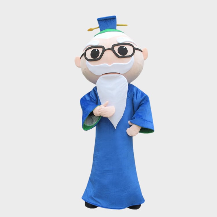 ★本格的着ぐるみ 古代の先生 おじいさん★大人用 ブルー 青い古代の先生 きぐるみ 2頭身タイプ★格安 良質 のぞき可 オーダーメイド コスプレ イベント用品 幼稚園 結婚式 衣裳 マスコット 客寄せ お子様大喜び 子供 展示場